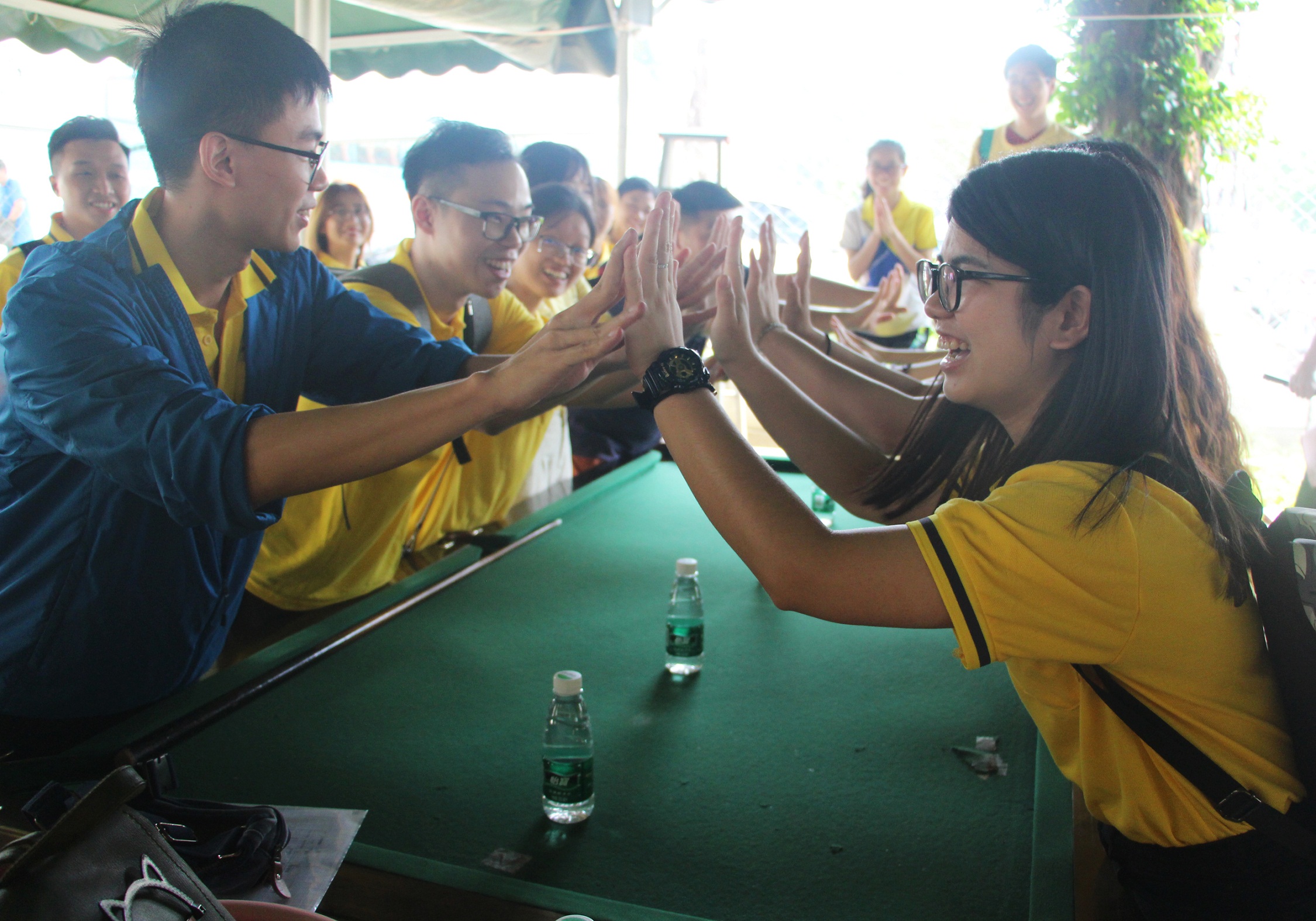经过多日连绵的阴雨,5月11日早上终于出现久违的阳光。PG电子小黄人大部队到达番禺大夫山后,以小组为单位进行了“猜拳谁快”和“抢水瓶”游戏,挑战大家的反应力。活动开展过程中各小组激情盎然、招数齐出,战况激烈。最后集团本部第二小组所向披靡,在两个游戏中顺利胜出,赢得“快手魔王”称号和两份精美的礼品。