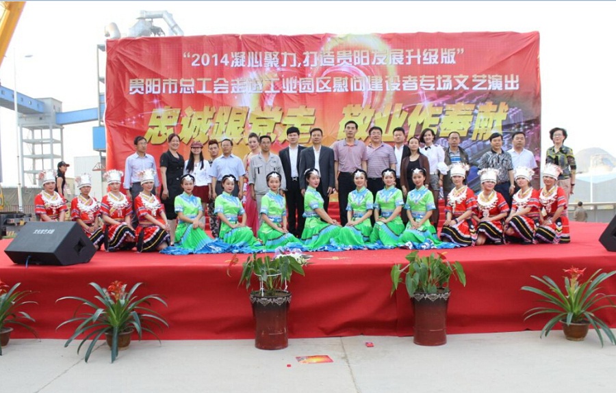 2014年4月18日下午15:00时,贵阳市总工会“忠诚跟党走 敬业做奉献”走进工业园区慰问建设者专场文艺演出在贵州公司如期举行。贵阳市总工会党委副书记严贵均、副主席赵凯、清镇市园区党政工作部部长龙礼超等领导应邀观看了演出,海螺水泥、西南水泥等园区主要企业相关人员也到场观看了演出。
