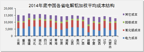 2014年我国电解铝生产加权成本分析