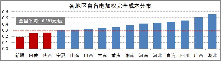 目前,全国共有40家电解铝企业配有自用电厂,占全国电解铝企业总数比重为39%,自备电产能占全国总产能的57%。作为电解铝主要成本构成要素之一,现阶段电力成本占据电解铝成本的35%。综合分析全国各地区自备电加权完全成本,截至今年3月份,仅有新疆、内蒙、陕西的加权完全成本低于0.293元/度的全国平均水平,其中新疆地区自备电成本为0.187元/度。从电解铝厂完全成本上看,尚未投入使用自备电的电解铝厂基本处于亏损运营行列,预计亏损面将随着越来越多自备电的投入使用而逐步有所缓解。