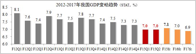 发稿时间:2015-07-22国家统计局最新公布数据,2015年上半年我国GDP同比增速为7%,其中第一季度和第二季度同比增速均为7%,经济运行趋于稳定。世界银行在7月上旬公布的《中国经济简报》预测,2015年中国经济增速为7.1%,随后三年将按0.1个百分点的速度回落。总体而言,未来几年我国经济增速将呈现逐步放缓的趋势,其主要原因取决于结构性改革进程。