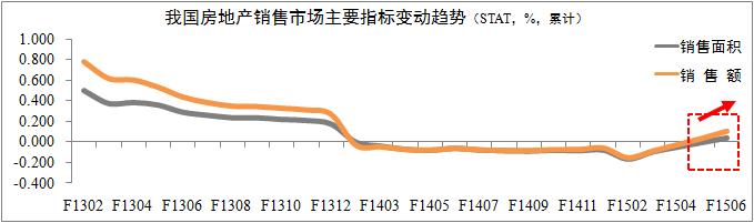 销售市场活力整体回升。6月份全国商品房累计销售面积同比增长3.9%,环比增加4.1个百分点,其中住宅增长4.5%;销售额同比增长10%,环比增加6.9个百分点,其中住宅增长12.9%。高频数据显示,我国一线城市的住宅价格指数已由负转正,但二线及三线城市仍然为负数,其主要原因是庞大的库存量限制了价格回升,同时也反映了房地产业调整的结构性特点。