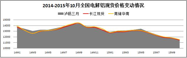 受全球铝市疲态的影响,报告期内我国铝棒价格呈现出阶段性大跌的异常现象。截至10月中旬,广东6063型铝棒价格下浮至10995元/吨,月化环比下降11.1%。铝棒价格大幅下浮的另外一个主要原因是铝型材市场需求在原本疲惫的环境下,原料需求进入季节性淡季。