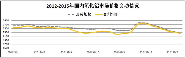 报告期内,国产氧化铝市场价格继续保持了下浮的基本趋势,其中现货加权报收2177元/吨,环比下降了2.75%,降幅较上期扩大1.09个百分点;贵州均价报收2116元/吨,环比下降了3.76%,降幅较上期扩大2.9个百分点。市场预期现阶段氧化铝市场价格正接近于波谷位置,预计2016年将会有不同程度的反弹。虽然今年以来我国氧化铝市场价格一路下行,但国内氧化铝工厂并未因此而普遍关停设备。数据显示,9月份全国氧化铝建成产能近6692万吨,运行产能近5748万吨,开工率近85.9%,环比上升0.2个百分点。产量方面,9月份国产氧化铝472.4万吨,环比下降2.72%。从供需平衡上看,9月份国产氧化铝有近7万吨的缺口,但整体供需仍然保持相对平衡。