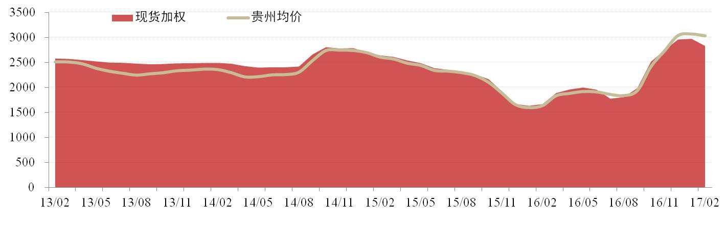 全国现货价格方面,2月份成为氧化铝价格走势的分水岭,氧化铝市场价格出现小幅下降但主要氧化铝企业控制力仍在,价格相对可控。全国氧化铝现货加权价为2,928元/吨,环比下降1.38%。贵州氧化铝现货加权价为3,030元/吨,环比下降1.17%。贵州地区现货加权价格相对高于全国其他地区。