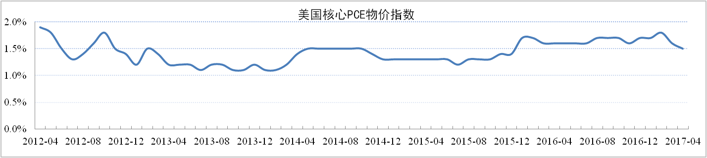 美联储6月15日议息会议宣布加息25个基点,联邦基金利率从0.75%~1%调升到1%~1.25%,这是美联储今年以来第二次加息,预计年内还会加息一次。会议对2017年美国GDP增速的预测从2.1%上调至2.2%,将失业率预期从4.5%下调至4.3%,将2017年核心PCE通胀预测从1.9%下调至1.7%。