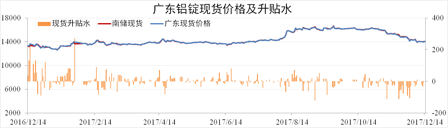 截至12月14日,南储华南铝锭现货价报14,040元/吨,环比下跌8.53%,广东现货成交价报14,040元/吨,环比下跌8.38%。库存方面,截至12月7日,全国库存为169.53万吨,环比上涨0.77%。