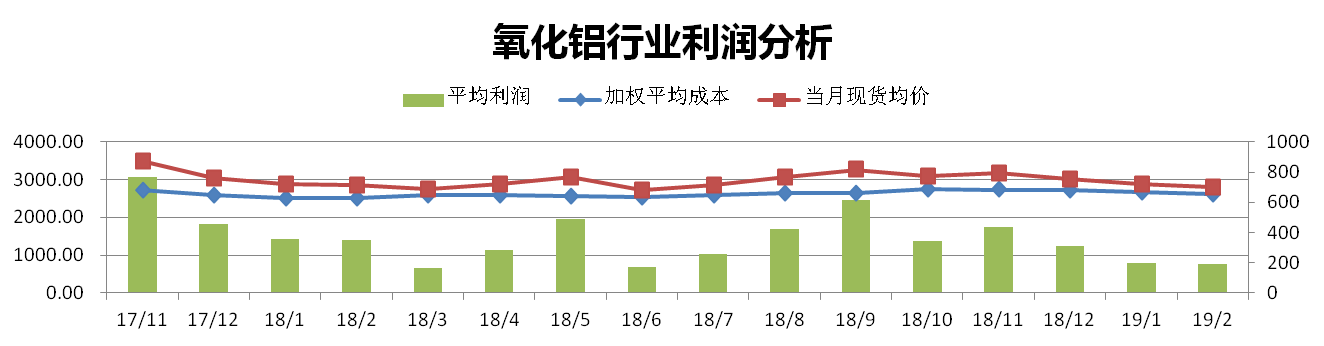 2月份国内氧化铝加权平均成本为2622元/吨,较上月下降2.02%。当月全国氧化铝现货成交均价为2812元/吨,较上月下降2.19%。理论氧化铝行业平均利润水平为190元/吨。