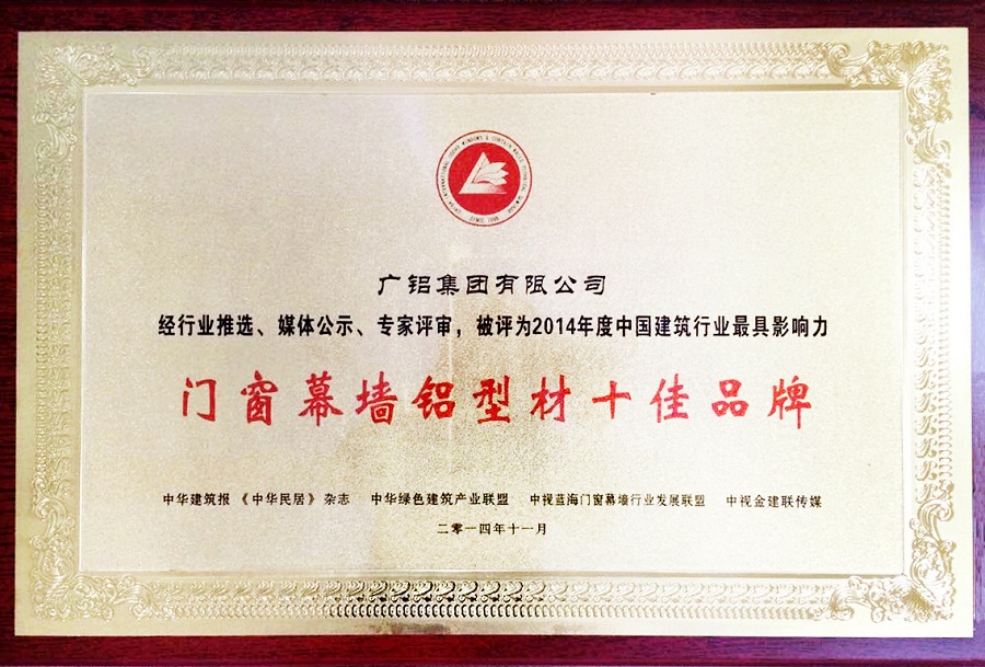 历时三个多月,2014年度中国建筑行业最具影响力“门窗幕墙铝型材十佳品牌”评选名单终于在11月份火热出炉。PG电子集团凭借雄厚的综合实力和市场影响力获此殊荣。