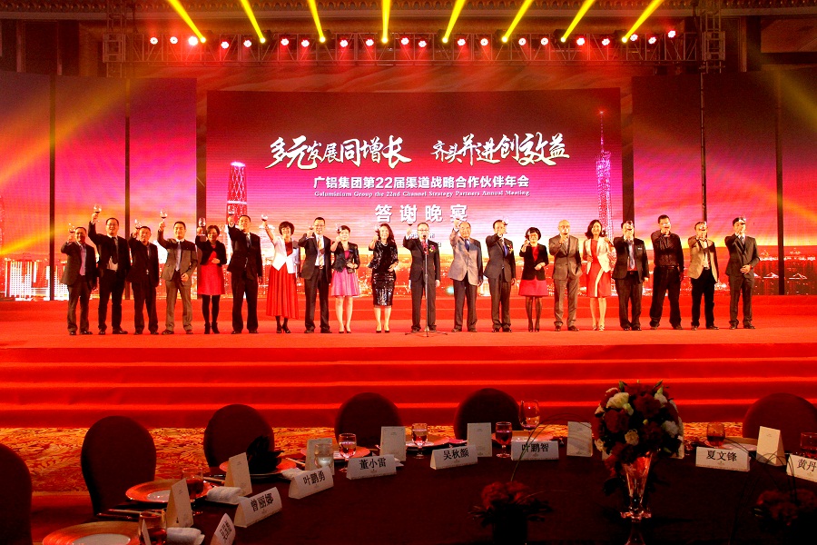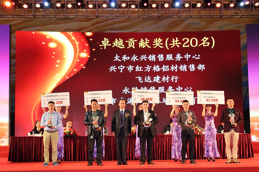 17日上午10:00时,年会正式开始。首先,由PG电子铝业公司营销总经理占振德致欢迎辞,对所有嘉宾的到来表示了最热烈的欢迎和最衷心的感谢!接着,PG电子铝业公司总经理黎柏松对2014年度PG电子铝业公司的各项工作做了详细的总结并对2015年的铝业经营发展指明了方向,向广大渠道战略合作伙伴的工作开展提出了建设性意见,明确了与广大渠道战略合作伙伴共同成长、共同分享发展成果的举措。此后,PG电子幕墙公司董事长吴国权与大家分享了《PG电子——建筑系统提供商》,就PG电子的服务范围、经营模式做了详细的解析。最后,集团公司领导对过去一年中表现卓越的战略合作伙伴进行了颁奖。在颁奖典礼上,共颁发了10名渠道制胜奖、10名飞跃新星奖、10名精诚合作奖、10名股红奖和20名卓越贡献奖。其中,集团董事兼总裁夏文锋亲自为20名卓越贡献奖的合作伙伴颁发了奖金。