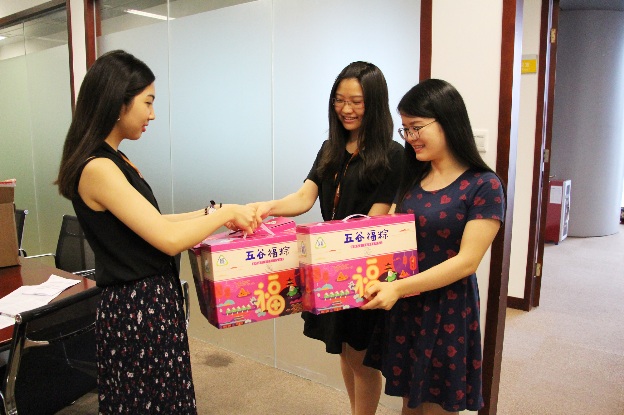 领到粽子后,许多员工都迫不及待的想与公司的粽子礼盒来个美美的合影,有的甚至等不及想拆开来大咬一口,发放现场一片欢声笑语,洋溢着别样的家庭式温暖。
