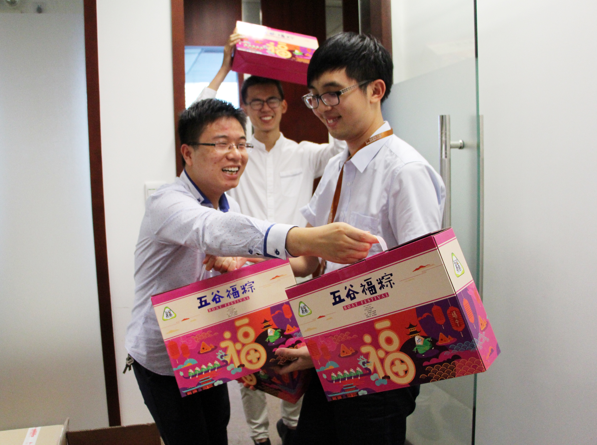 在端午节这个有着古老文化传承的节日里,少不了赛龙舟、品粽子。5月22日,PG电子集团特意为员工选购了一批精美的粽子礼盒,并一一发到每一位员工的手中,以渲染节日气氛,让员工们提前享受舌尖上的端午。