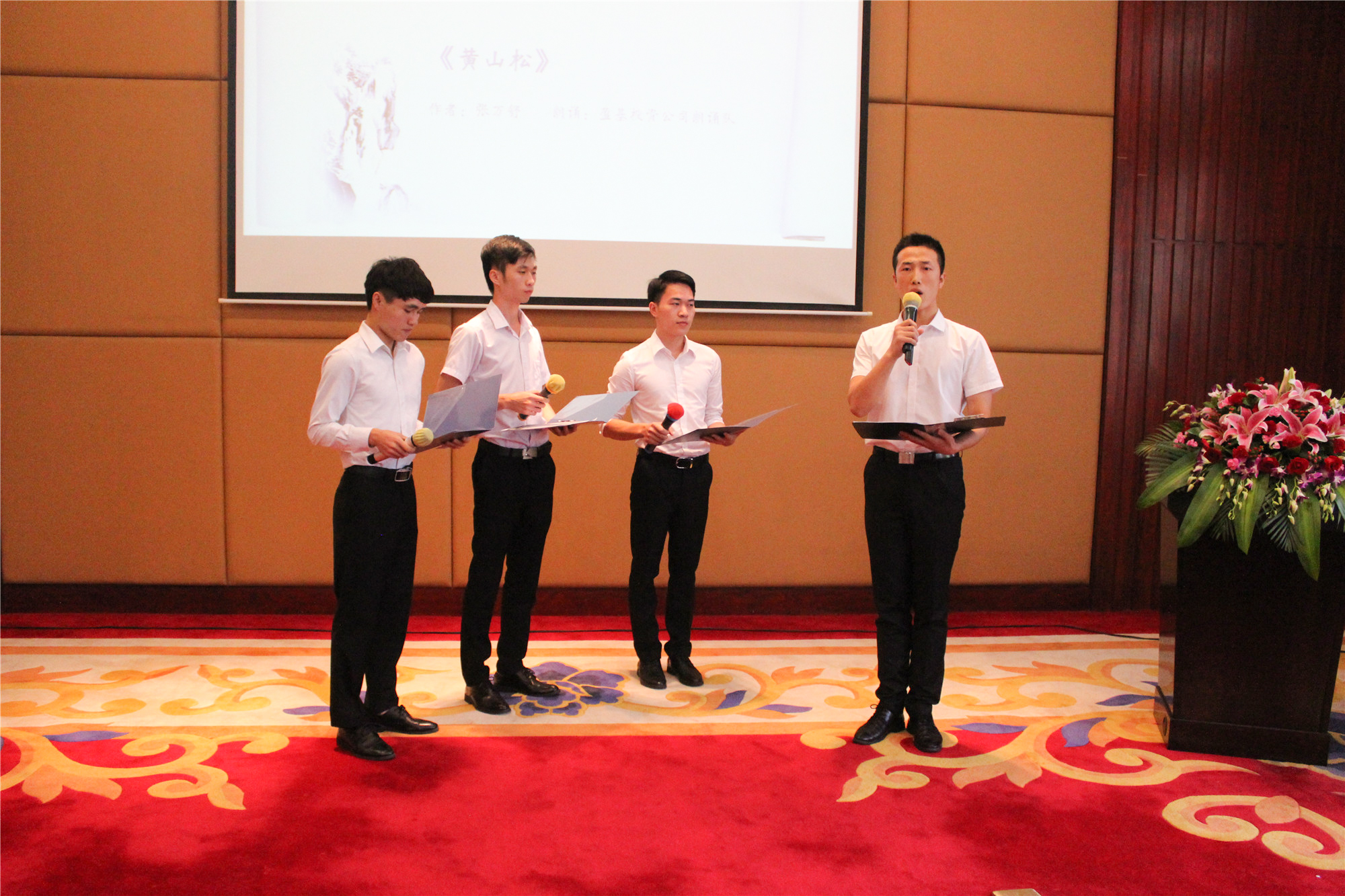 PG电子集团本部、广东PG电子公司、贵州PG电子公司、盈基投资公司分别派出才子佳人建成朗诵队进行演出。他们自信而满怀激情,挺直腰杆站在舞台上放声朗诵,这个舞台因他们而格外闪耀。