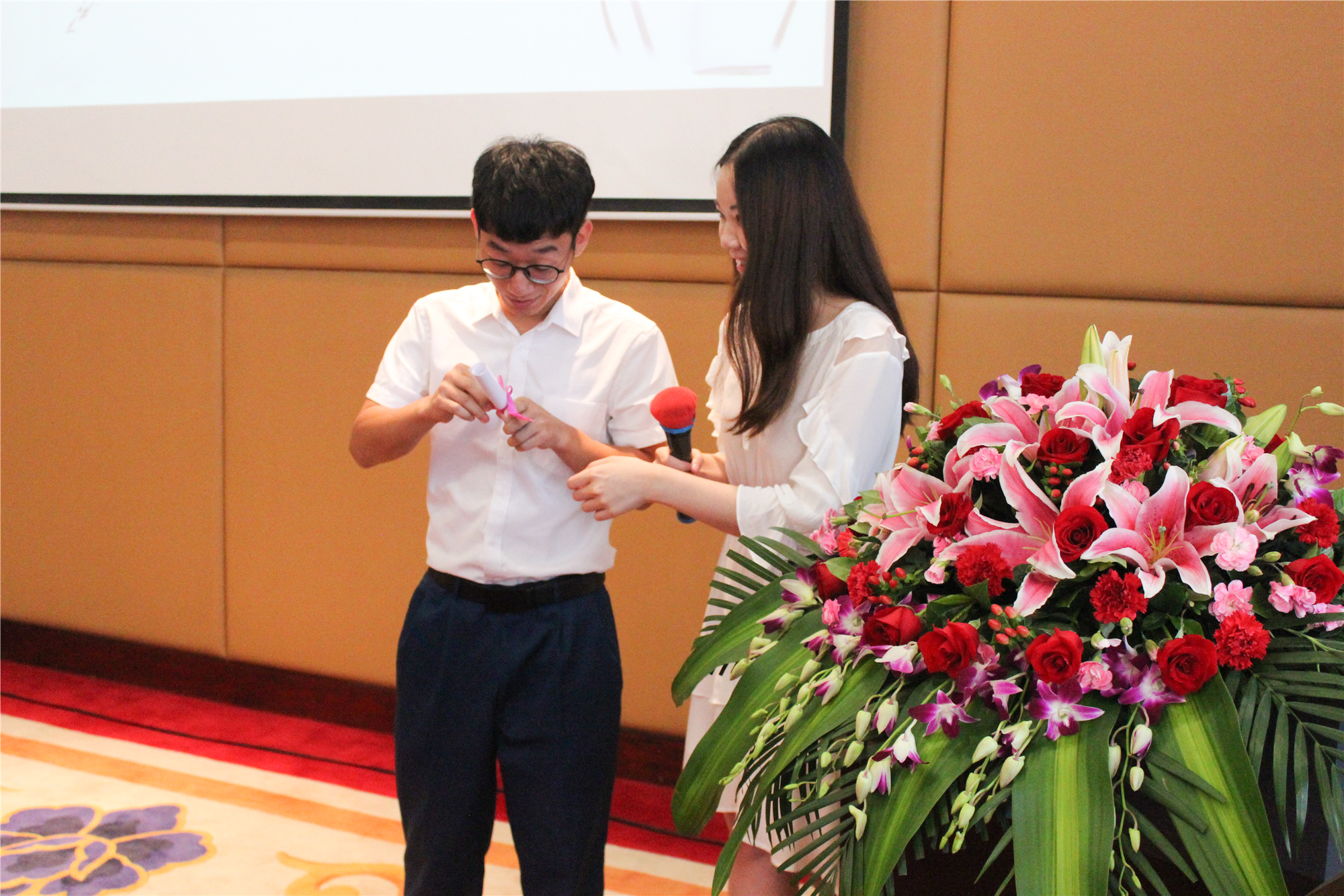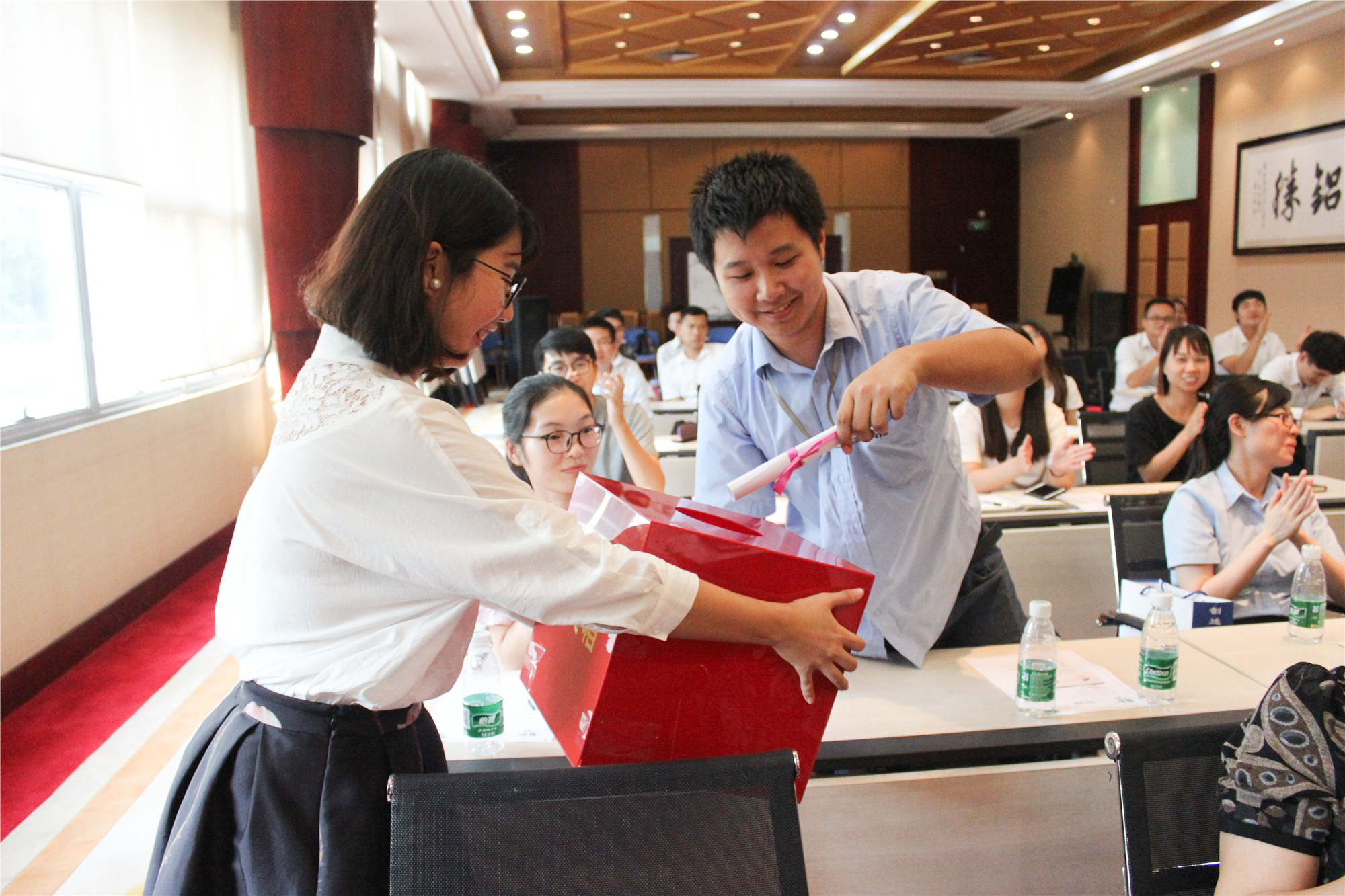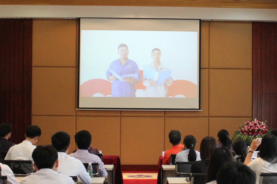 员工现场拆开朗诵卡片