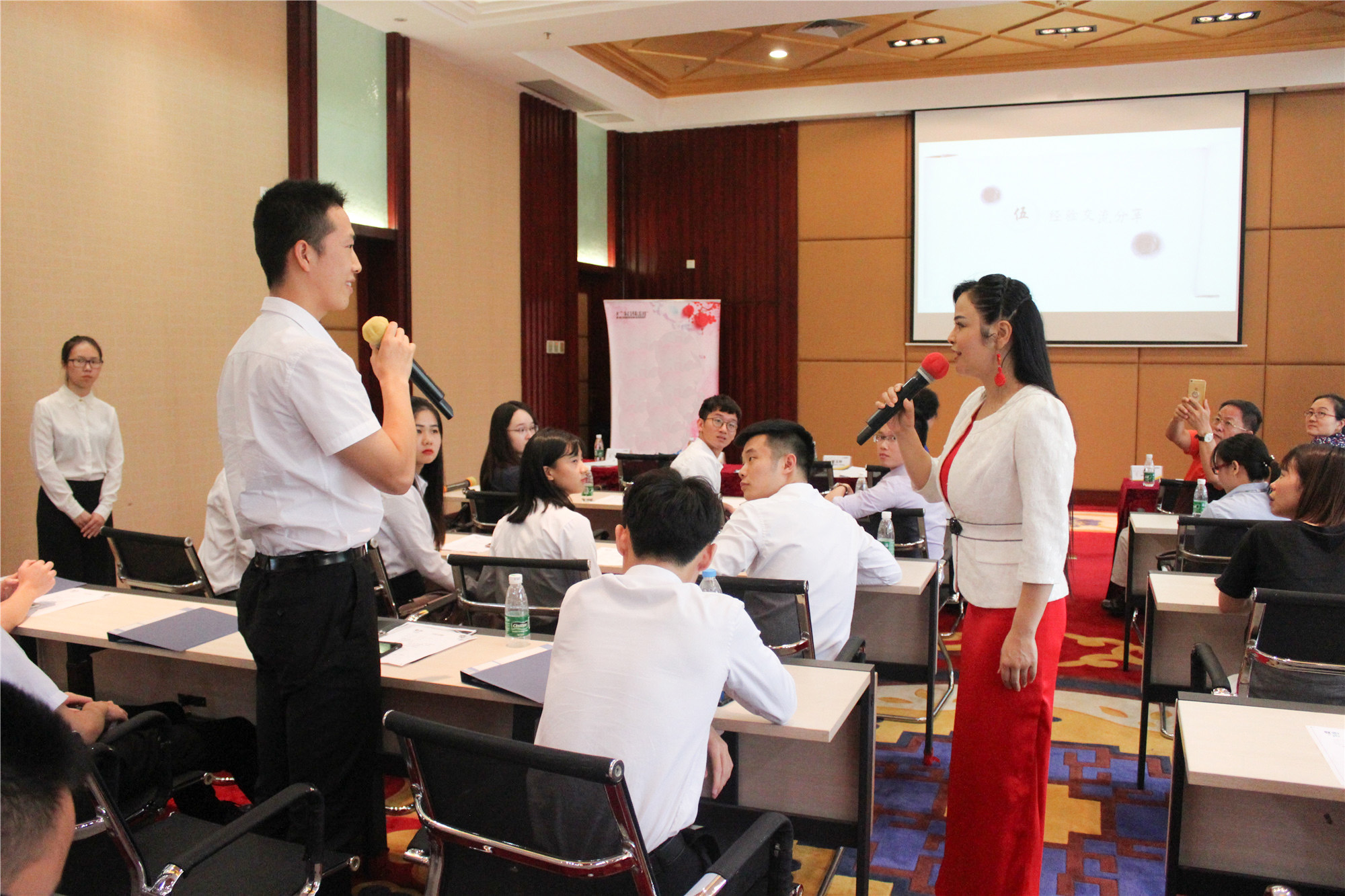 曾玉婷老师用自己刚才朗诵的《致橡树》作为例子,向员工们倾囊分享自己的朗诵经验,更邀请大家上台尝试不同的身份说出同一句话时的区别。更有好学的员工当场向老师请教关于朗诵“代入感”的问题。