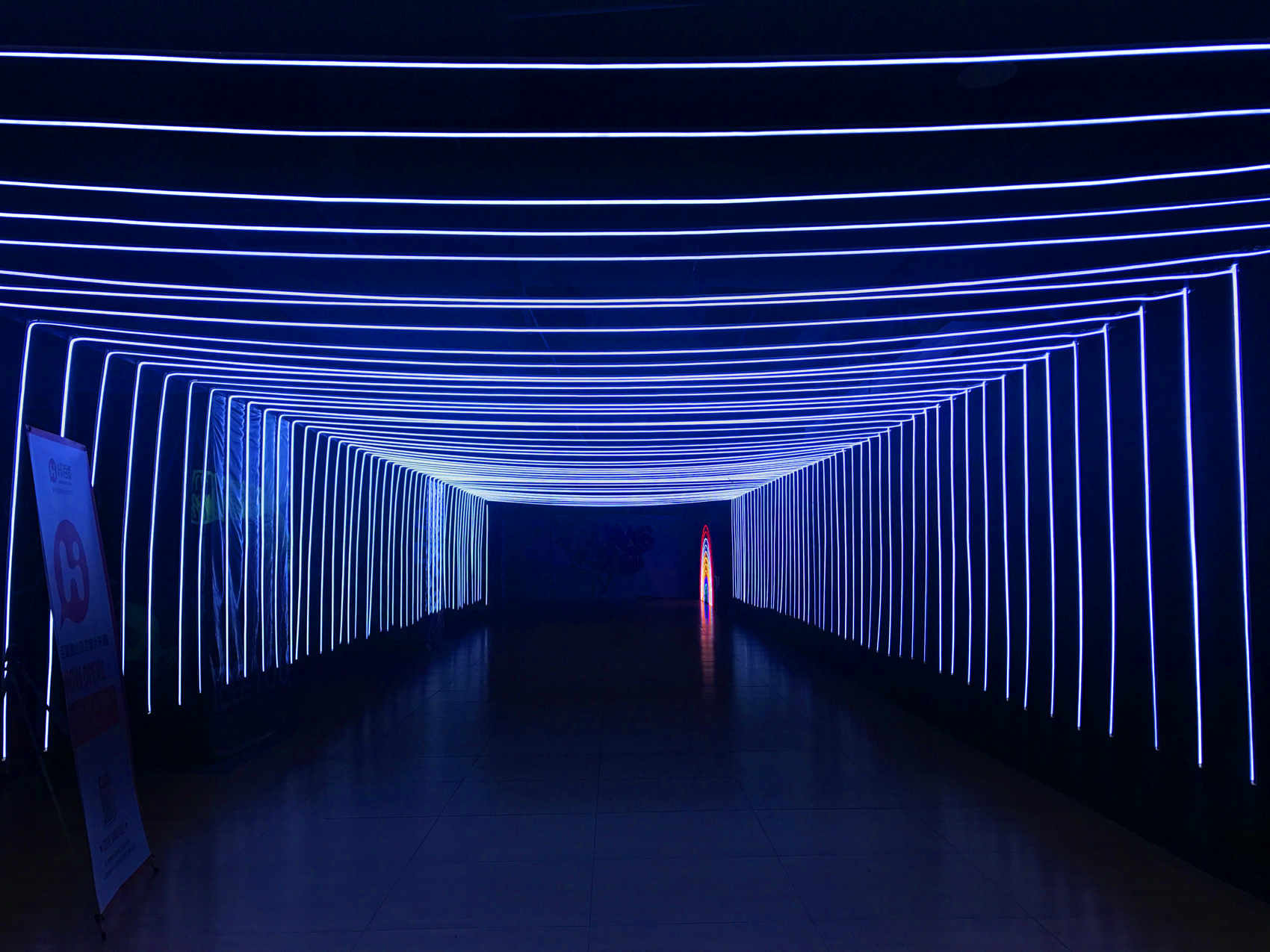 由光电组成的时光隧道,置身其中,仿佛穿梭于时空隧道,追溯过去探寻未来。