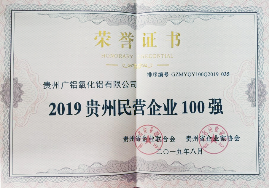 近日,贵州省企业联合会和贵州省企业家协会对在2019年度为贵州经济社会发展作出突出卓越贡献的贵州省优秀企业、优秀企业家、最佳诚信企业、诚信示范企业等予以表彰,贵州PG电子氧化铝有限公司与贵州茅台集团、贵州通源集团等众多实力企业均连续多年登上本次双百强榜单。