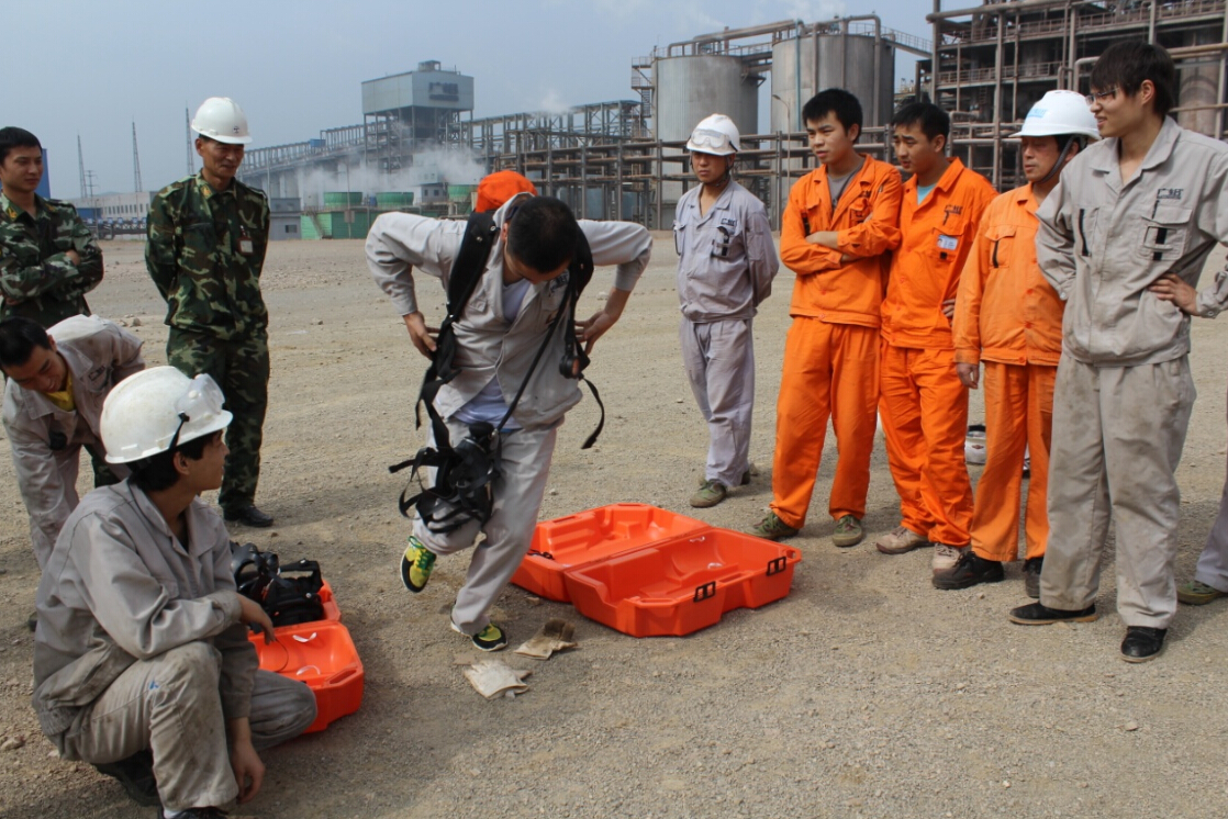 上午10:00时,安全环保处技术员何开顺、陈红到溶出现场空地对各车间员工进行消防器和空气呼吸器的使用方法的培训指导,说明比赛流程和比赛规则后组织按照原料、溶出、分解、蒸发、焙烧、煤气、热电、电控、装备、化验、行政出场顺序开始进行比赛。各参赛队员均势若猛虎、争分夺秒,最终化验车间李翔以15'44"的成绩拿下消防水带使用比赛第一名,热电车间蒋胜以15'72"取得消防水带使用比赛第二名,行政处陈方以16'61"取得消防水带使用比赛第三名;焙烧车间罗奉彬以14'80"取得空呼器呼吸器比赛第一名,煤气车间熊津凯以16'88"取得第二名,热电车间聂明福18'72"取得第三名。
